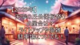 なお、過去には開花が遅れた年にライトアップ期間が延長されたこともありました(2025年は4月13日まで延長実施)。2026年は逆に開花が早いため、満開のタイミングはまつり序盤に集中する可能性が高いです。桜吹雪の夜桜も趣があるので、期間後半の来園も悪くはないですよ。