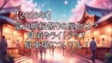 | ライトアップ | 現時点では未発表(実施される可能性が高い) | 18:30〜21:00(予定) |